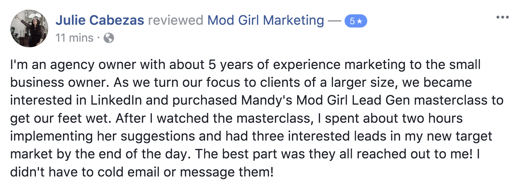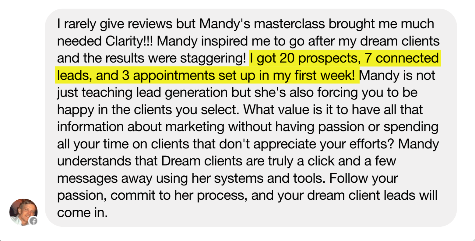 Transform your business and learn how to successfully land 5 - 8 new leads per day (without advertising) using the strategies outlined in this Mod Lead Gen Masterclass.