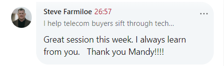 Step 2: Log on to LinkedIn at 12 pm PT / 3 pm ET the 2nd Thursday each month. Look for a notification to pop up within 5 minutes that states Mandy is Live. Click that notification.